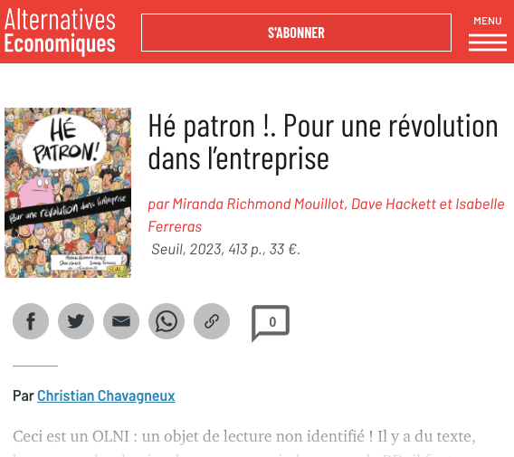 Merci Le Monde pour cette affirmation à propos de notre roman graphique « Hé Patron ! Pour une révolution dans l’entreprise » :